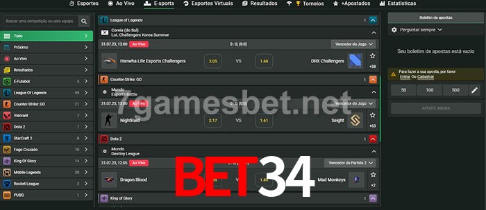 O Bet34 oferece uma grande seleção de opções de apostas em e-sports com probabilidades competitivas